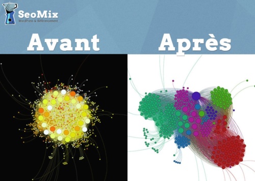 Nous avons effectué des optimisations uniquement au niveau technique, c'est à dire en modifiant le thème pour optimiser le maillage à l'intérieur de chaque catégorie, et pour justement séparer chaque section de notre WordPress en silos distincts. Nous n'avons fait aucune action sur les contenus (aucune optimisation manuelle du maillage interne). La simple modification du thème WordPress a permis la création de silos, même si un travail manuel aurait décuplé l'effet.